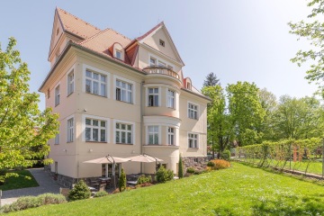 This First-Republic villa from 1932 was sensitively rebuilt and completely renovated in 2013. It is situated on an elevation above the old town in a quiet residential area, on the edge of a park, just an 8-minute walk from Svornost Square. The whole area offers a fantastic view of the old town, the castle and the beautiful surroundings. The garden with a terrace and pergola invites you to sit and relax. Let yourself be inspired!