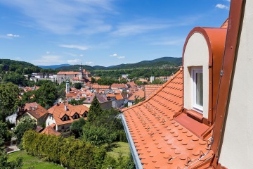 Our garden with a garden terrace invites you to sit and enjoy the breathtaking view of the old town and the castle.