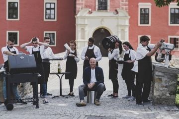 Restaurace je umístěna v budově, která je památkově chráněna, a to nabízí klientům možnost vychutnat si výborné jídlo v neopakovatelné atmosféře s přímým výhledem na zámek. Náš kuchařský tým pro vás připravil krátké sezónní menu. Jsme restaurací, kde naleznete ten správný požitek z jídla i atmosféry restaurace.